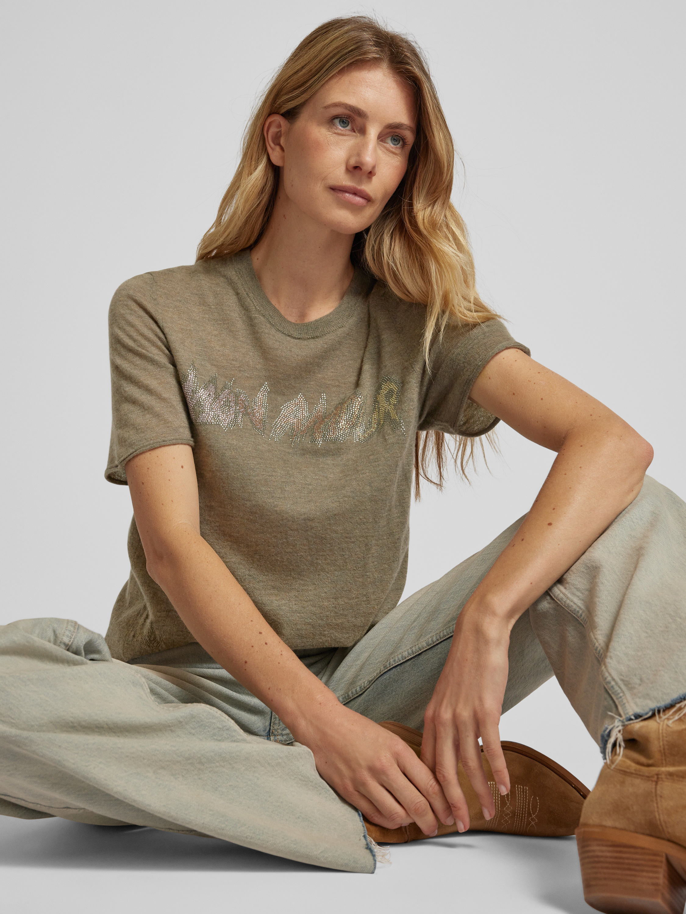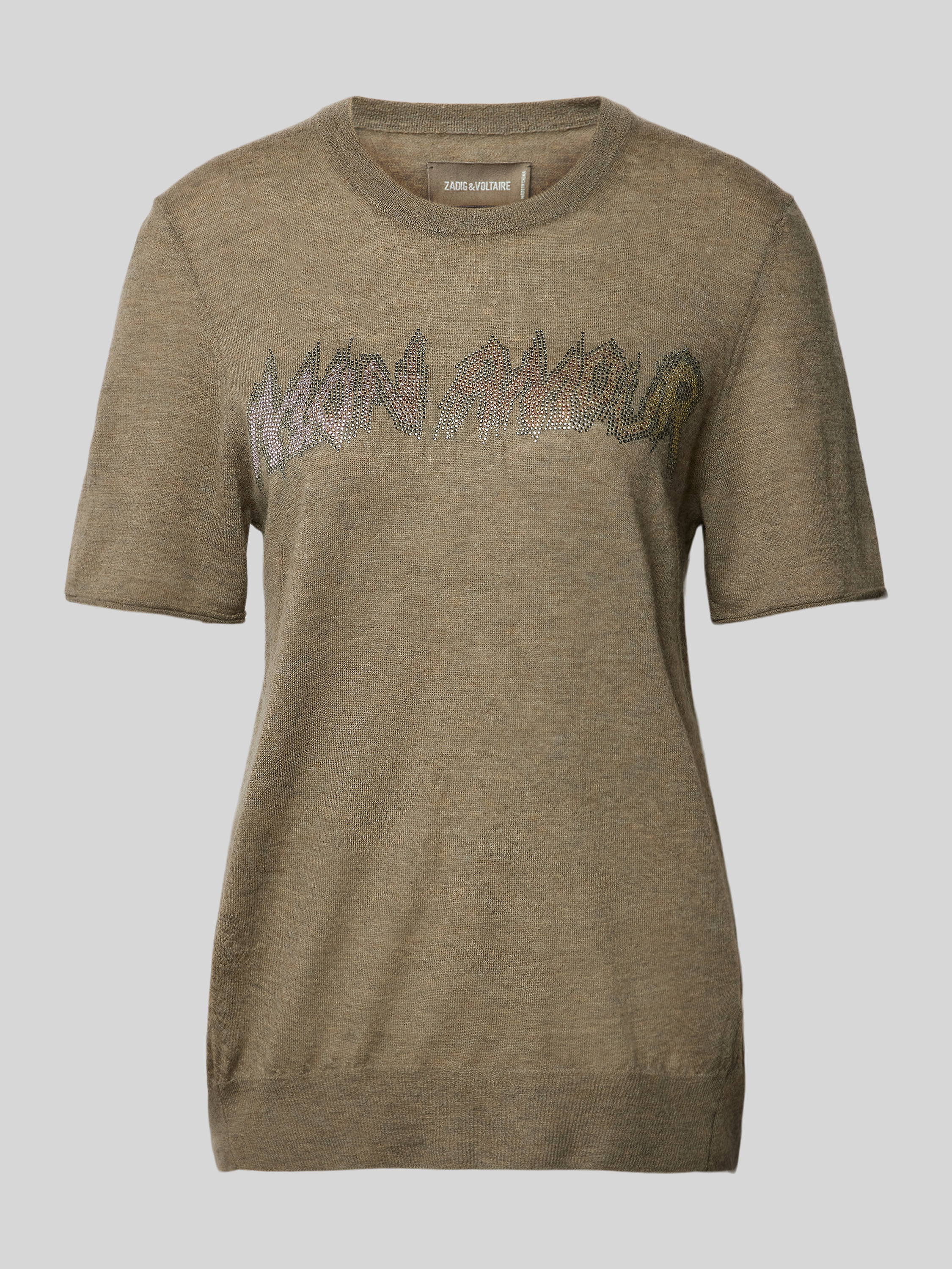 Zadig & VoltaireKaschmirstrickshirt mit Strasssteinbesatz Modell 'IDA' in khaki