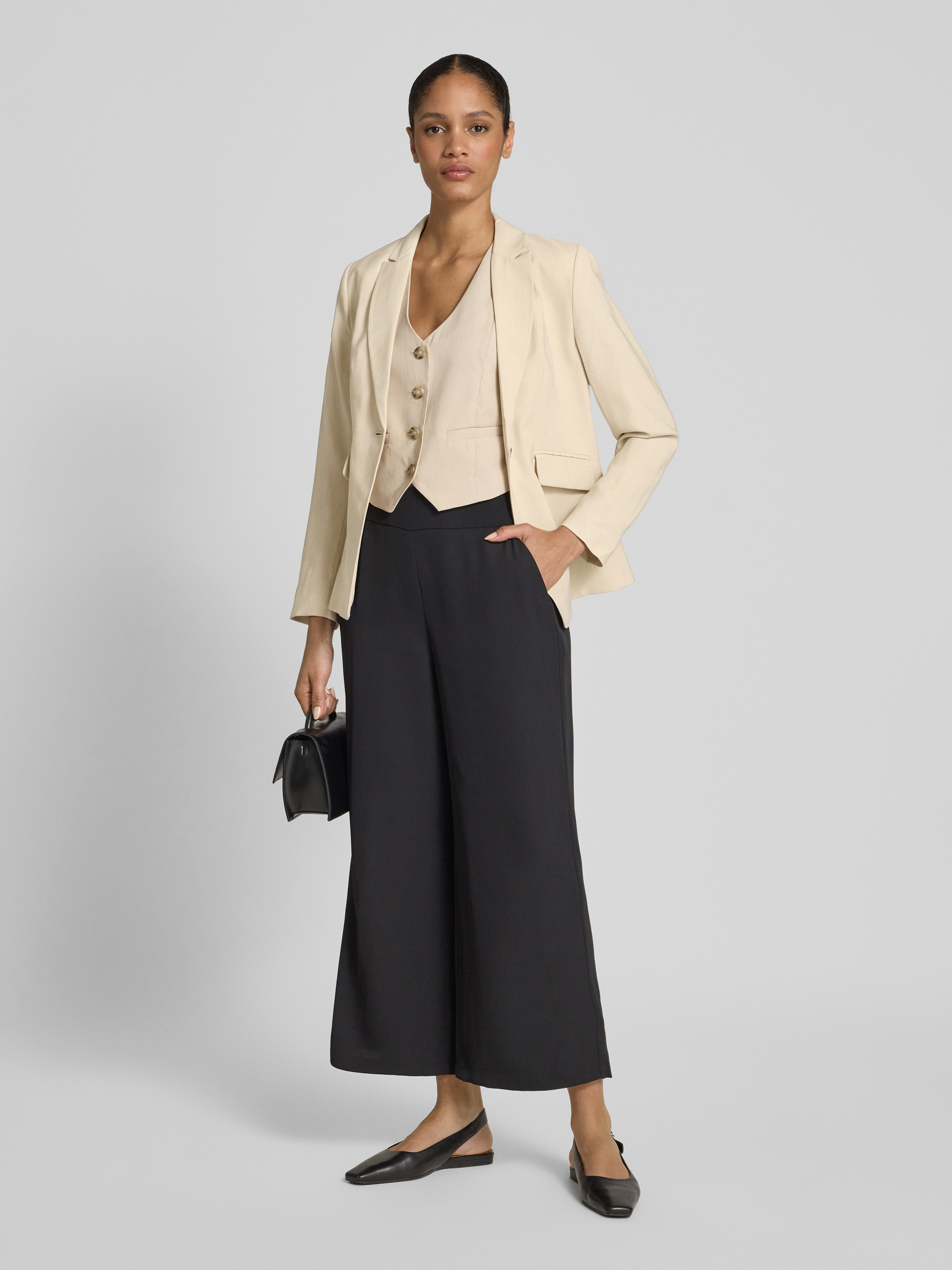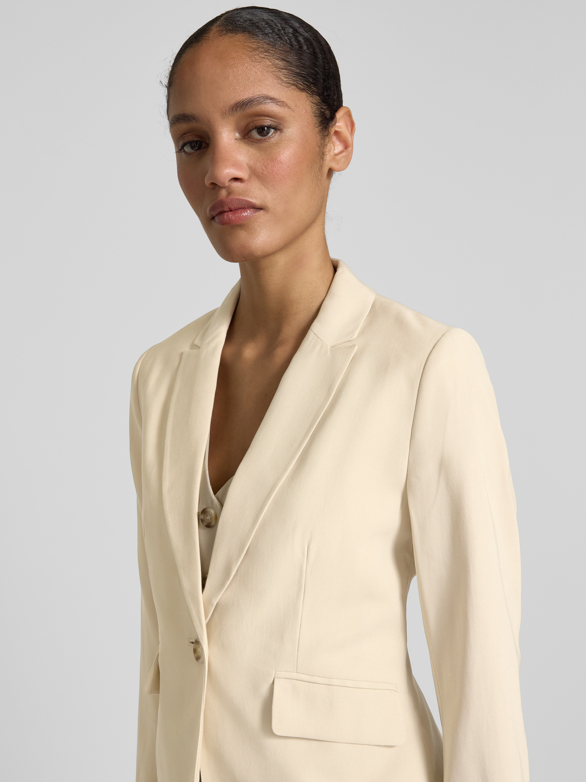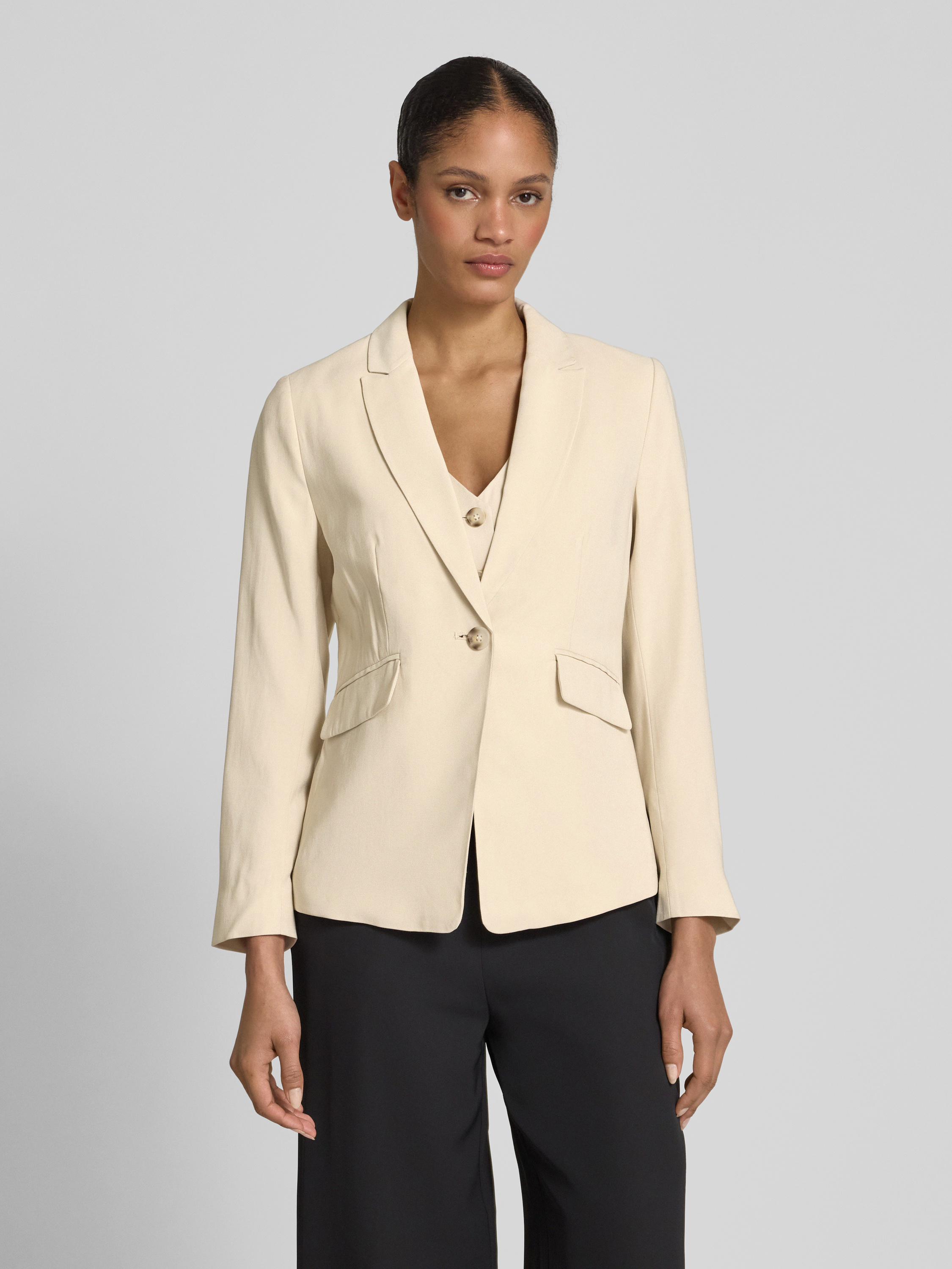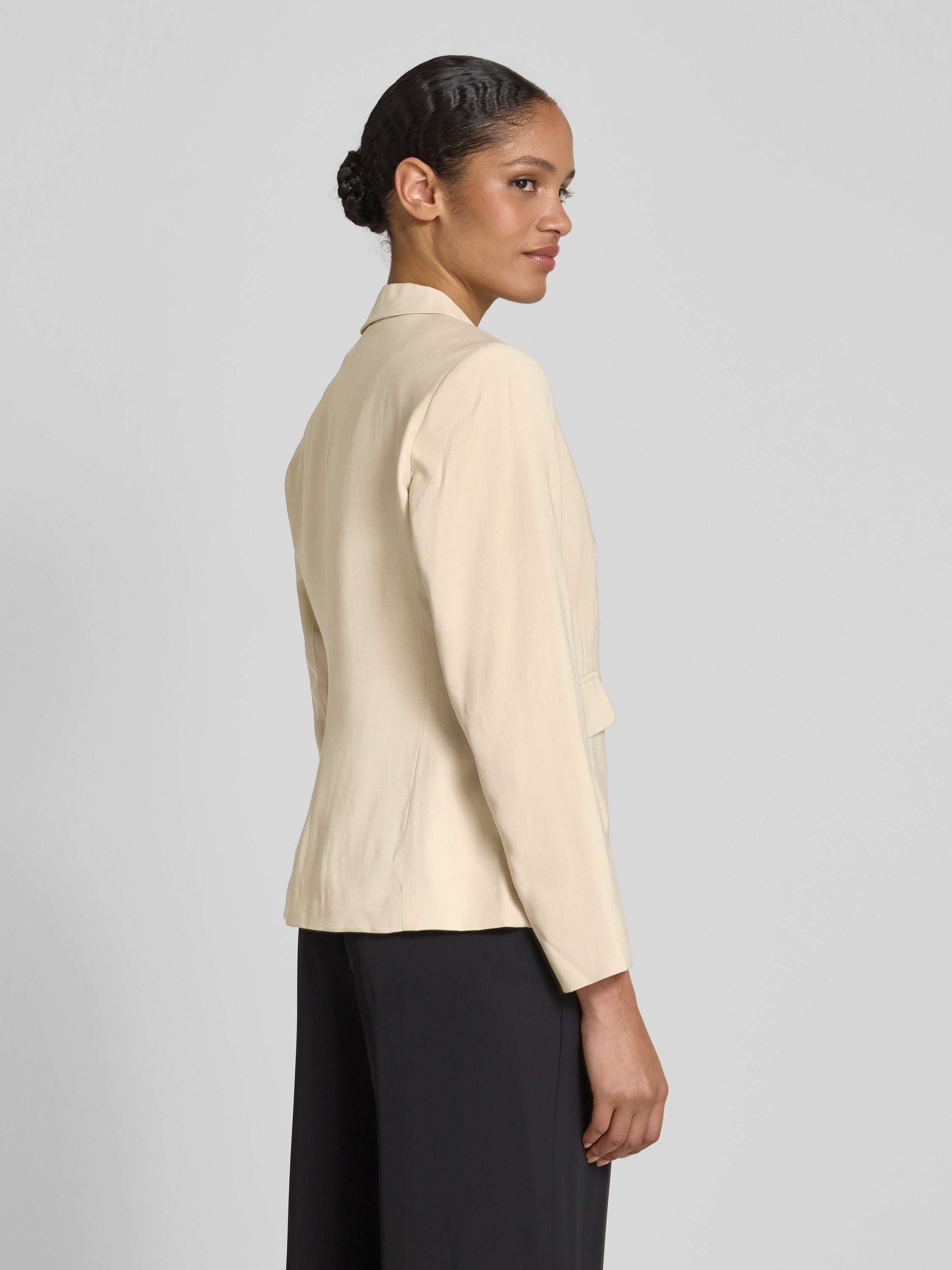 Der Blazer von zero, aus einem angenehmen Viskose-Mix gefertigt, überzeugt durch seinen leicht taillierten Schnitt. Mit einem klassischen Reverskragen versehen, eignet er sich ideal für formelle Anlässe. Seine Passform schmeichelt der Silhouette und verleiht jedem Outfit eine elegante Note.