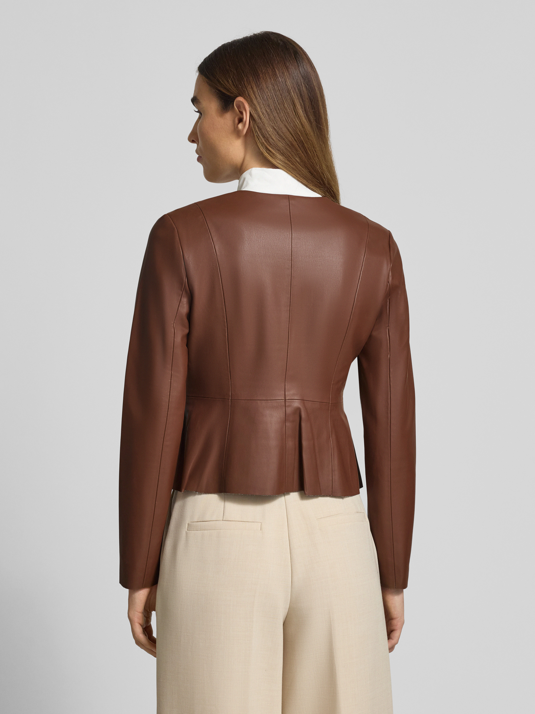 Die Damen Jacke von Zero zeigt sich in Leder-Optik und bringt durch den geraden Schnitt eine klare Silhouette ins Spiel. Ein Rundhalsausschnitt sorgt für dezente Vielseitigkeit und lässt sich unkompliziert kombinieren. Damit eignet sich die Jacke in Leder-Optik mit Reißverschluss besonders für unterschiedliche Anlässe.