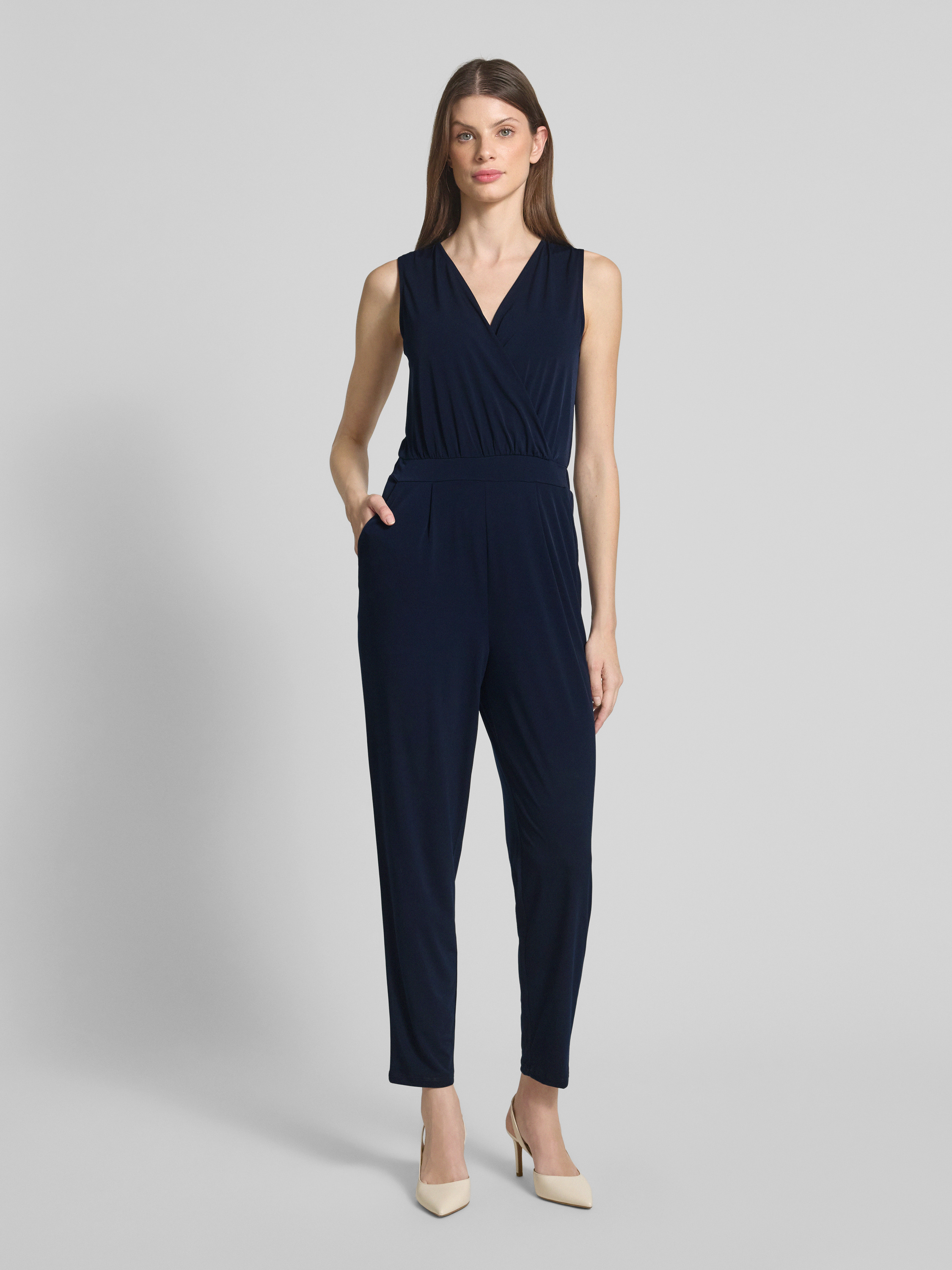 Der Jumpsuit von Zero vereint stilvolle Wickel-Optik mit einer körpernahen Passform, die dank des Stretch-Anteils Bewegungsfreiheit bietet. Der V-Ausschnitt und die breiten Träger sorgen für eine elegante Silhouette. Dieser vielseitige Einteiler eignet sich ideal für unterschiedliche Anlässe.