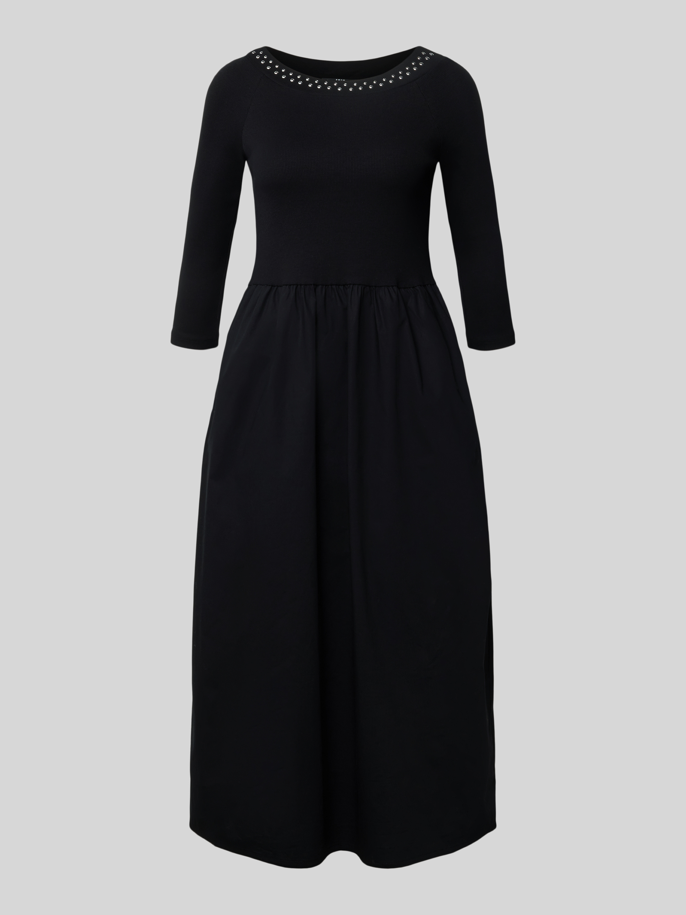 Das Midikleid von Zero zeichnet sich durch einen ausgestellten Schnitt aus, der Bewegungsfreiheit schafft und eine natürliche Silhouette unterstützt. Der Rundhalsausschnitt und dezente Nieten setzen zurückhaltende Akzente, während der Baumwoll-Elasthan-Mix ein angenehmes Tragegefühl ermöglicht. Mit 3/4-Ärmeln eignet sich das Kleid für unterschiedliche Anlässe.