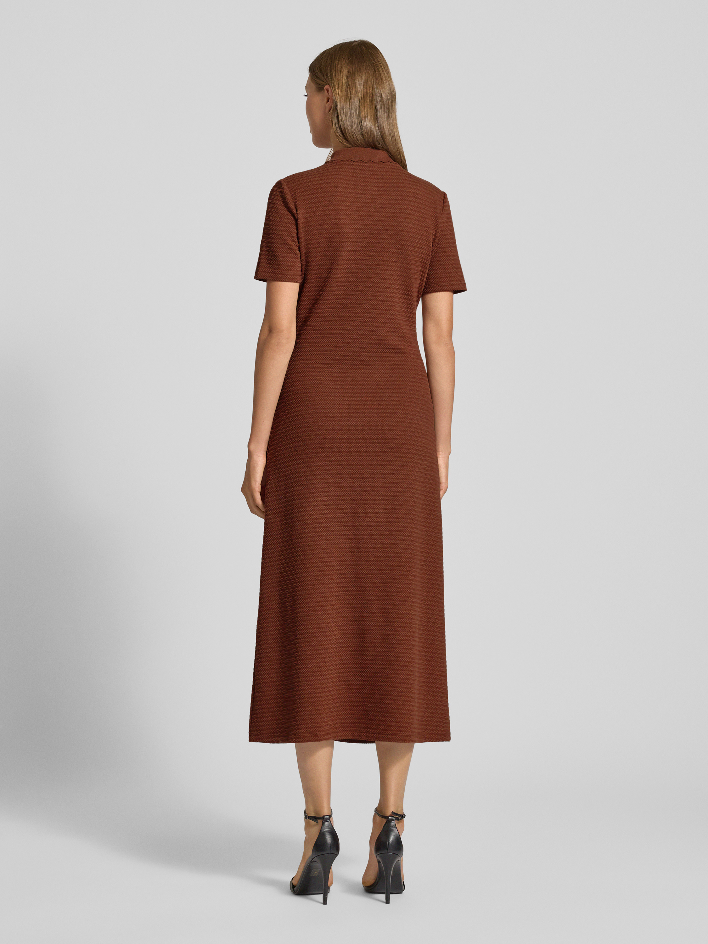 Das Midikleid mit Strukturmuster von Zero verbindet einen taillierten Schnitt mit einem angenehmen Material-Mix samt Baumwoll-Anteil, wodurch es sich angenehm auf der Haut trägt. Der Blusenkragen und die halblangen Ärmel unterstreichen einen zeitlosen Stil, der sich vielseitig kombinieren lässt. Durch das strukturierte Muster erhält das Kleid eine besondere Note, sodass es sich für verschiedenste Anlässe eignet.