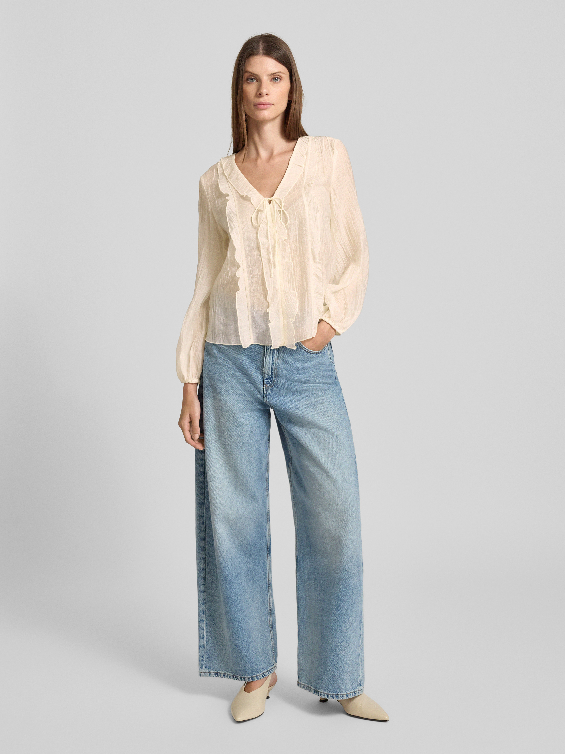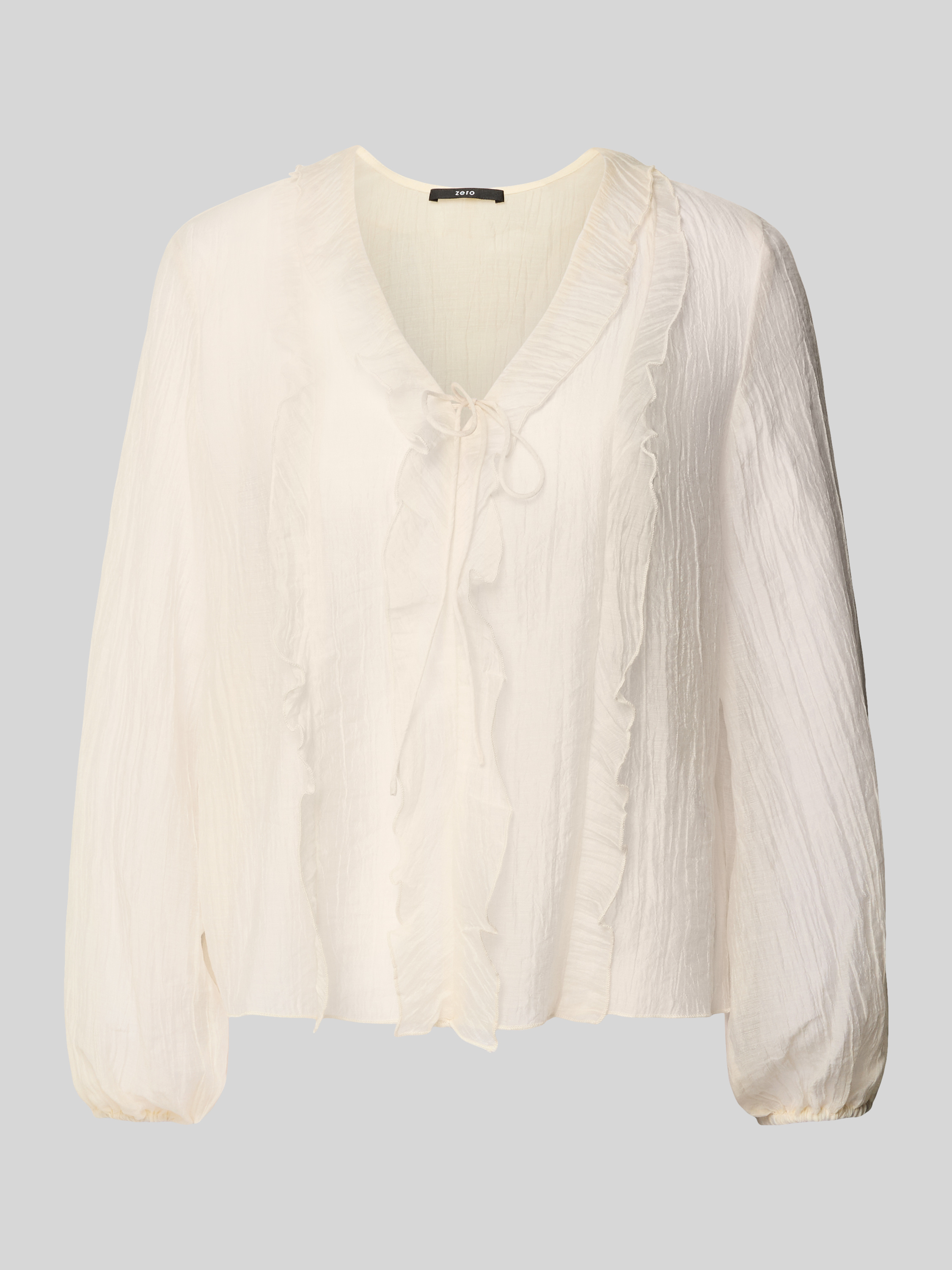 Die Regular Fit Bluse von Zero zeigt durch den Lyocell-Mix eine angenehm weiche Haptik und sorgt für ein lockeres Tragegefühl. Der V-Ausschnitt und die dezente Schnürung verleihen dem Schnitt eine moderne Note. Durch ihre entspannte Passform lässt sich die Bluse vielseitig kombinieren.