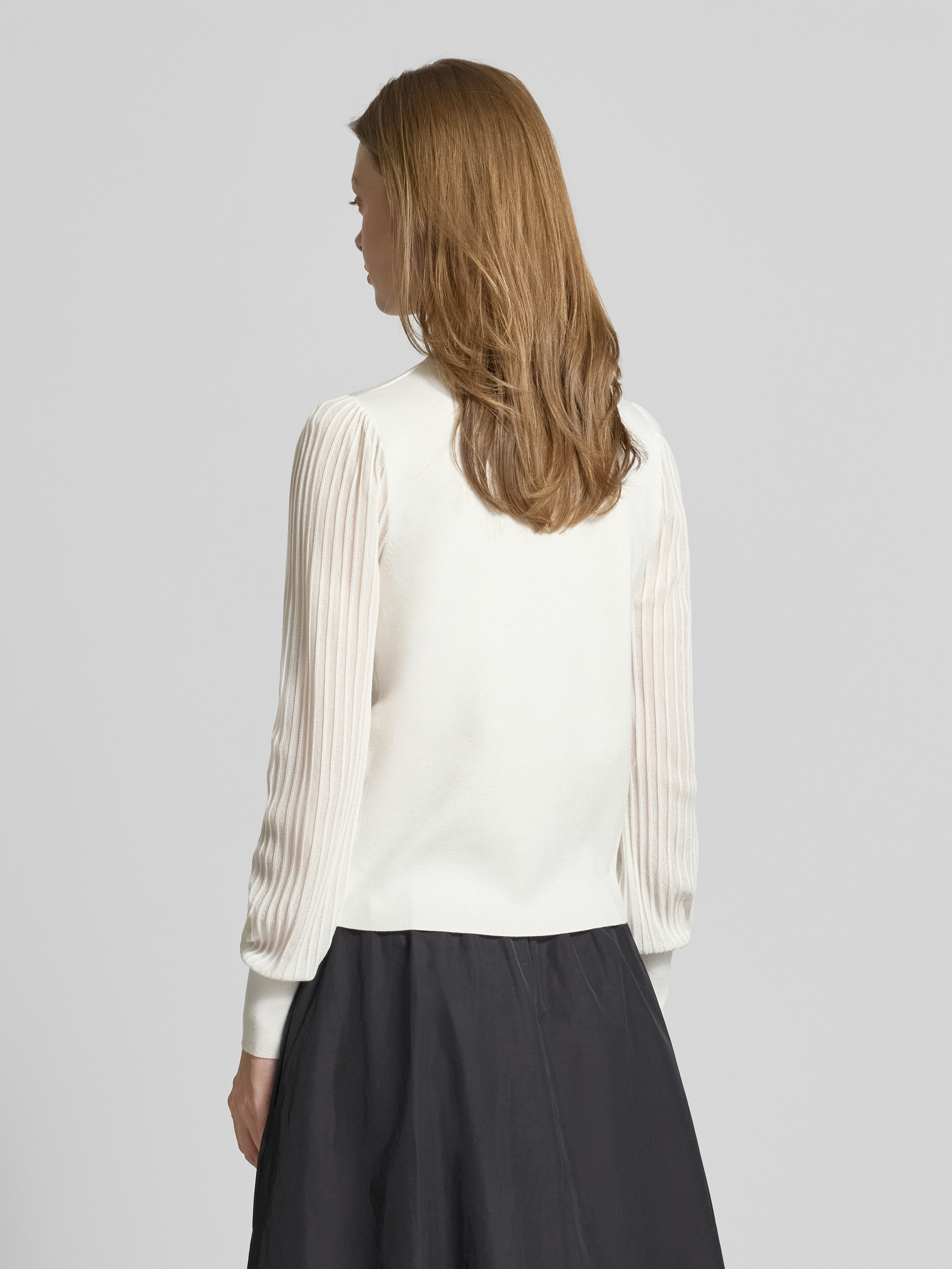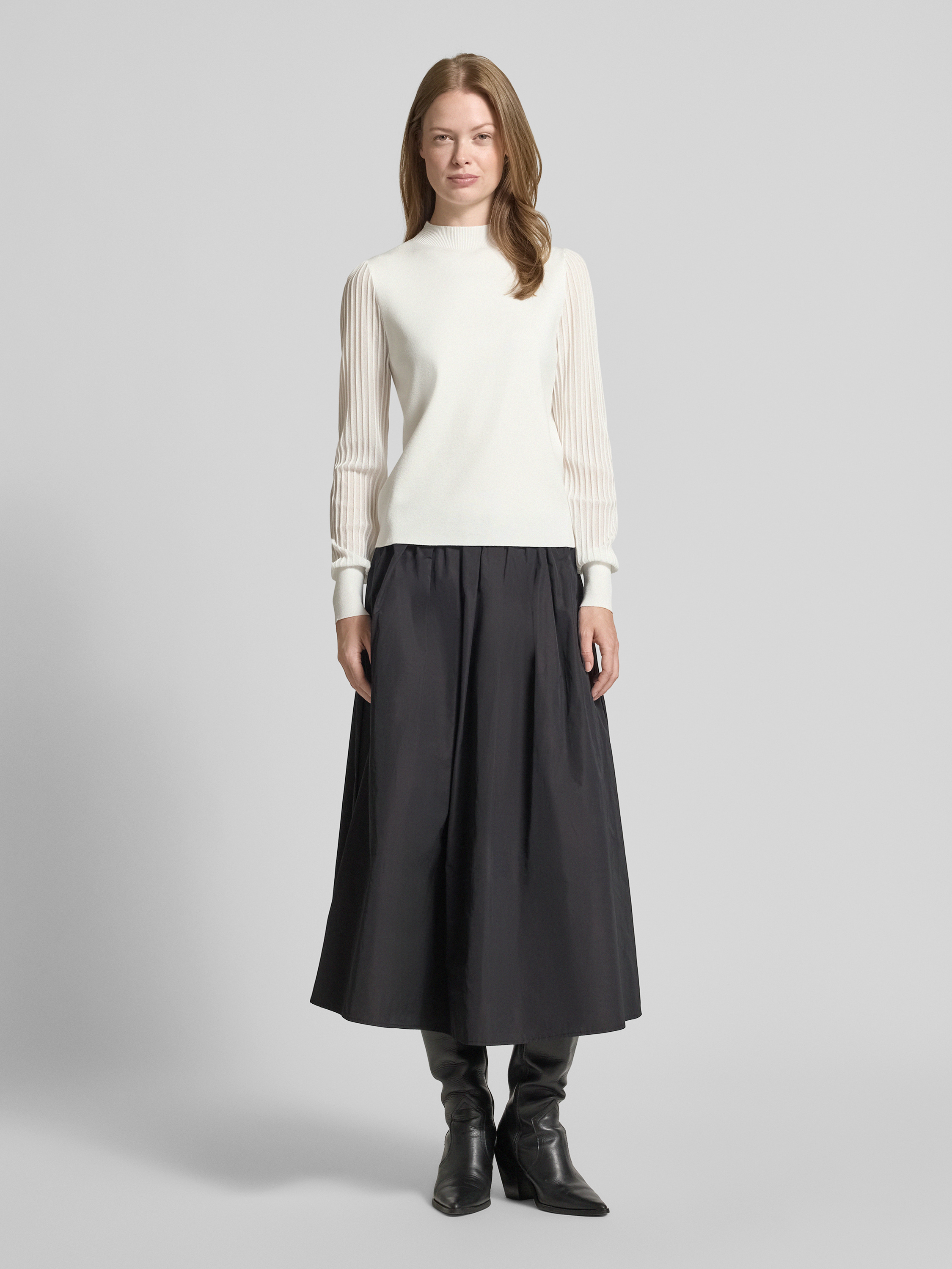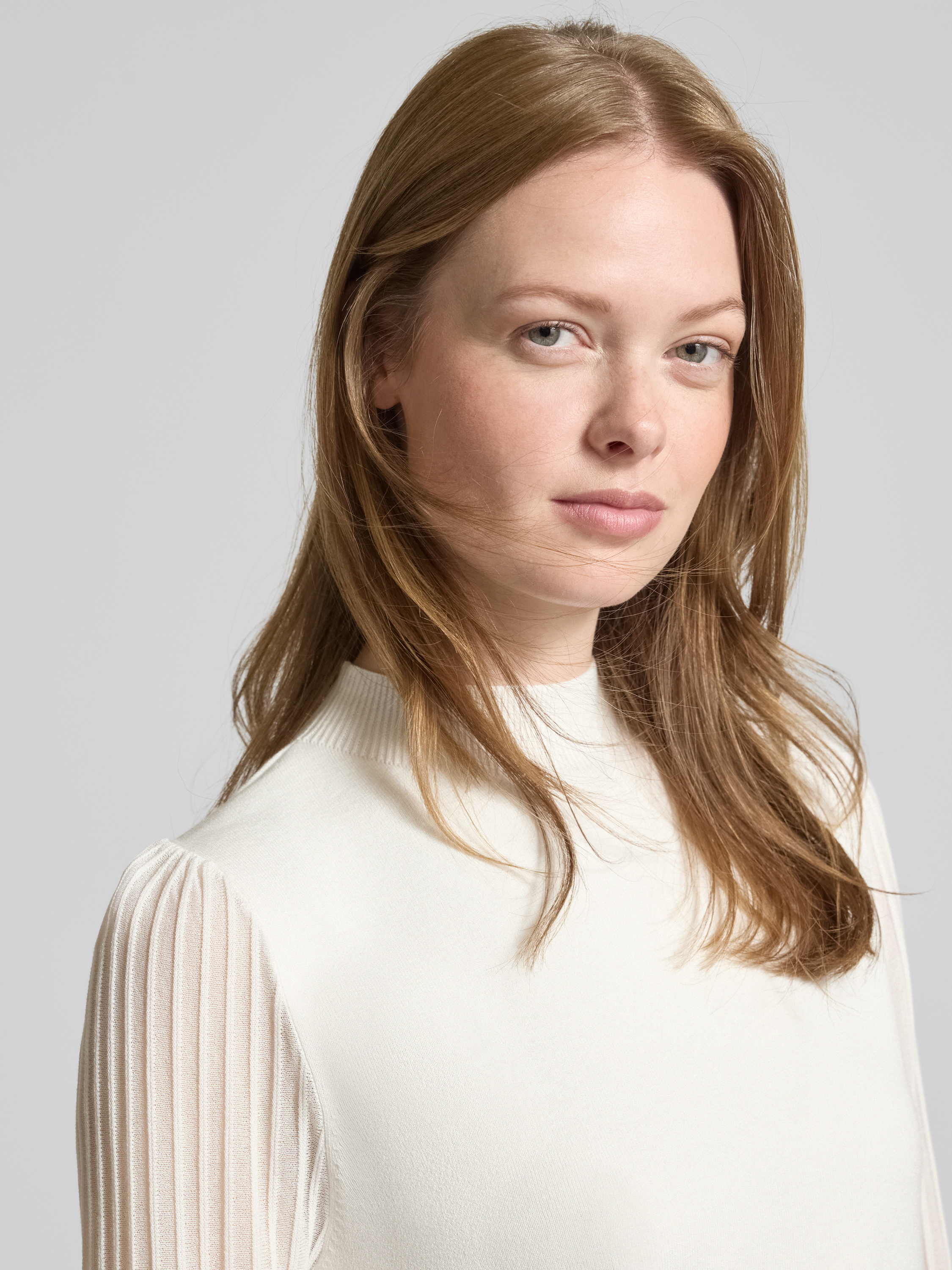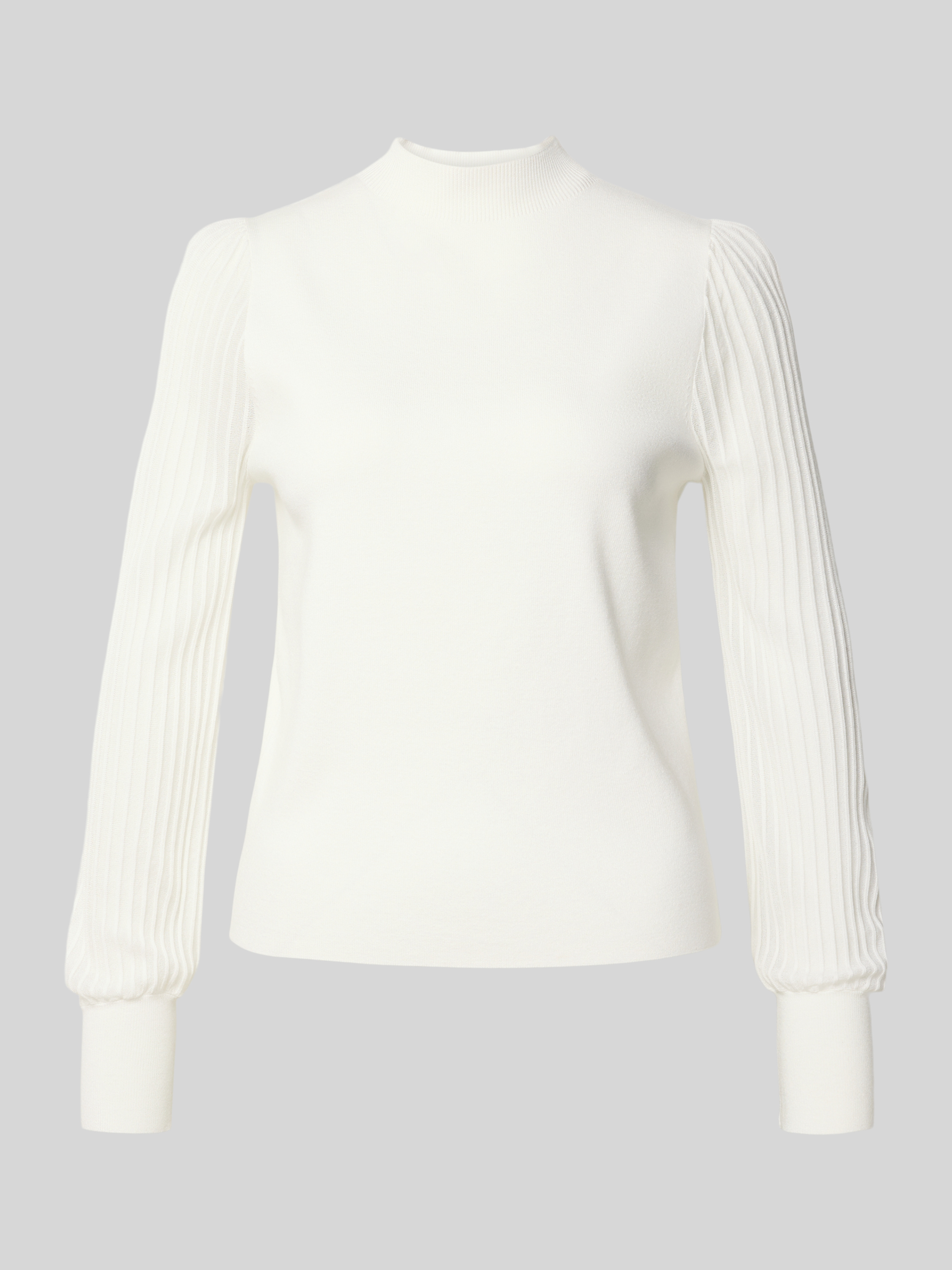 Der Strickpullover von Zero fällt durch seinen körpernahen Schnitt angenehm auf und passt sich dem Alltag flexibel an. Dank des Viskose-Mixes trägt er sich weich, während Ballonärmel und Stehkragen einen dezenten Akzent im Gesamtbild setzen. So entsteht ein vielseitiges Kleidungsstück, das unkompliziert kombiniert werden kann.
